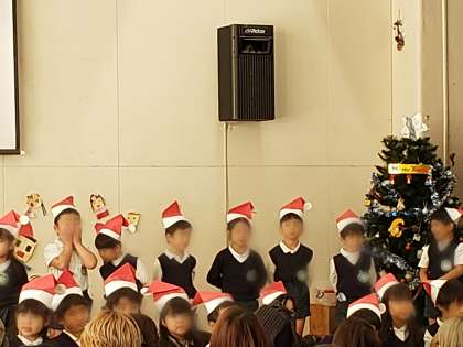 子どもたちは学年ごとに季節の歌を歌いました。友達と一緒に元気よく気持ちをあわせて歌い、拍手をもらいました。