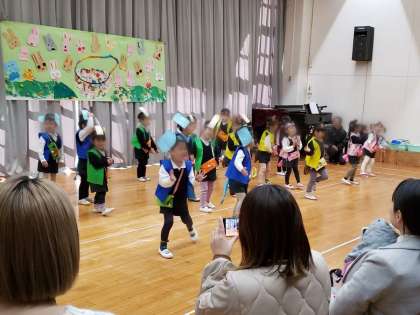 我が子だけではなく、クラスの友達や異年齢の子どもたちののびのびと発表する姿を見て、たくさんの拍手と感動がありました。みんなで子どもの成長を喜び合いました。