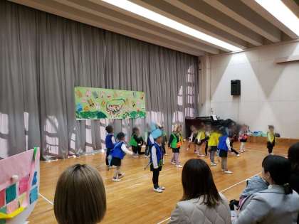 生活発表会1日目 もも組 公開日 2024/02/13 更新日 2024/02/13 お知らせ 3歳児 もも組の発表です。初めての発表会で緊張しましたが、みんな元気よく動物になって表現していました。おうちの人にたくさん拍手をしてもらい、発表会を楽しんでいました。 いいね(0)