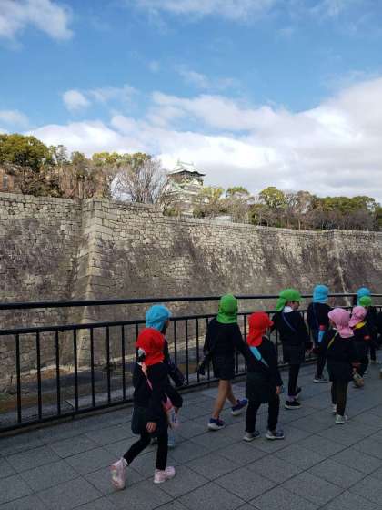3、4歳児にとっては初めての大阪城への道のり。大きい組さんに励まされながら元気に往復しました。