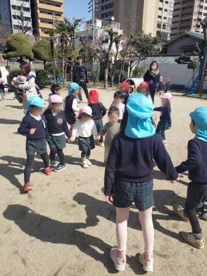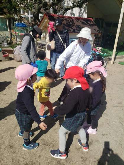 よく晴れた水曜日、ふれあいデー〜園庭開放〜に約20組の親子が遊びに来てくれました。