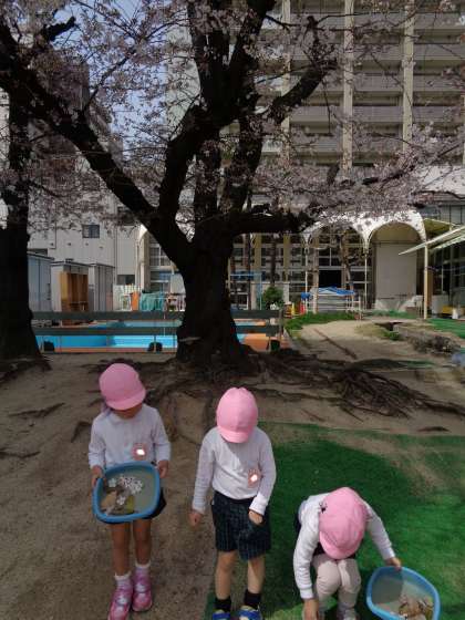 「きれいだね」「いっぱい集めよう」と、友達と拾い集めながら、春を感じています。