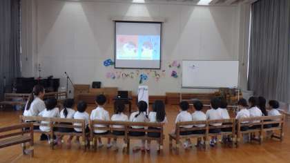 7月は熱中症について保健指導をしました。スポーツ振興センターが出している「かぶのしらせ」という子ども向け動画を視聴し、熱中症の症状や予防方法についてお話ししました。熱中症にならないために、「帽子をかぶる」「こまめに水分補給する」「日陰で休憩をする」「しんどくなったらすぐに先生やおうちの人に知らせよう」と伝えています。夏休みも暑さに負けず元気に楽しく過ごせるように、しっかりご飯を食べて規則正しい生活を送りましょうとお話ししました。