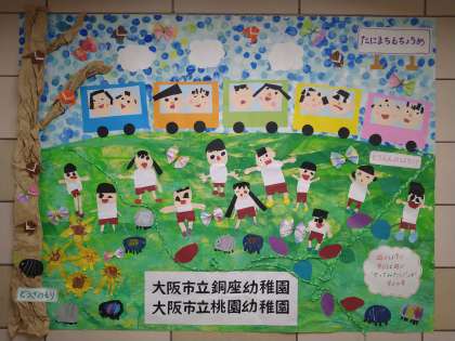桃園幼稚園と銅座幼稚園の子どもたちの作った作品を飾った共同作品となっています。