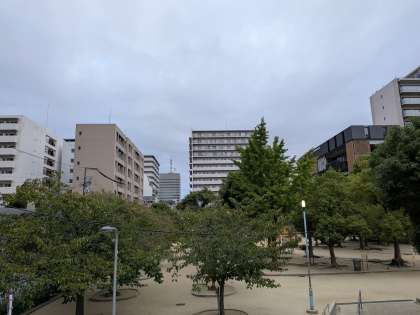 曇り空ですが、心地よい風が吹き、何よりの運動会日和の銅座公園です。