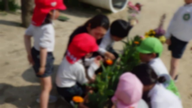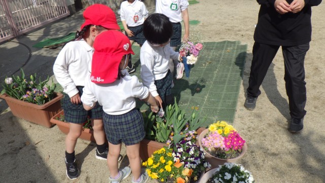 幼稚園のお庭にたくさんの花が咲いて、春を感じます。