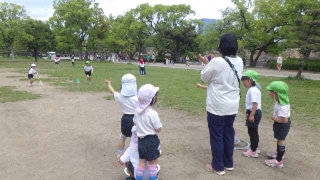 もり組(5歳児)とはな組(4歳児)が大阪城公園に行きました。