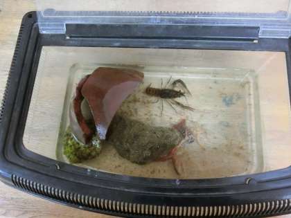 「なんか動かなくなってる」「ザリガニが2匹になってる」など、いろいろと話しながら観察していました。