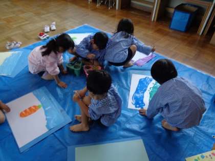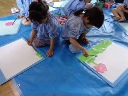 朝、絵の具を発見すると「何色使おうかな!」「早く絵の具したいなぁ♪」と嬉しそうに話をする子どもたち。
