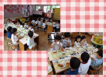 年少組の1号認定のお友達は、今週の月曜日から給食が始まったところなので、4回目の給食でした。子どもたちは給食を楽しみにしているようで、きちんと椅子に座り、それぞれお箸やスプーンを使って上手に食べています。