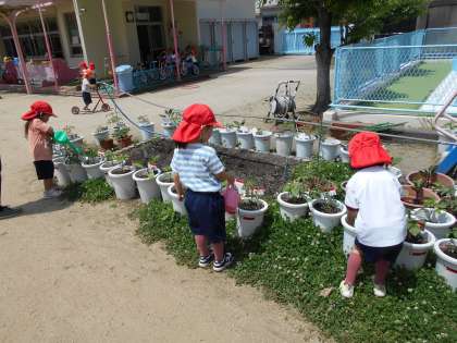 水やりしているときに、「せんせい!!みてー!!」「お花が咲いてる!」と、見つけたことを教えてくれていました。友達の花が咲いてるのを見て自分のもできてるかな?と見に行く姿も見られました。
