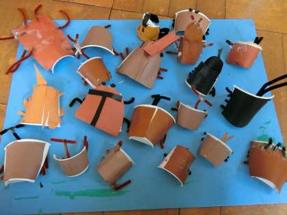 今回は、紙コップやゼリーカップを使って、立体的なカブトムシをつくることに挑戦しました!