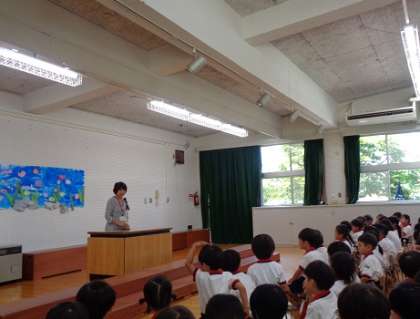 園長先生からは、、1学期を振り返るようなお話を、担任の先生たちからは、夏を元気に過ごすための約束を、劇で教えてもらいました。早寝・早起き・朝ごはんの大切さや、冷たいものを食べすぎないようになど、子どもたちにはしっかり伝わったかなと思います。