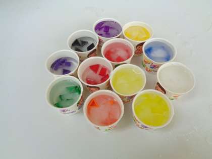 ゼリーカップに、小さいおもちゃを入れて凍らせました。