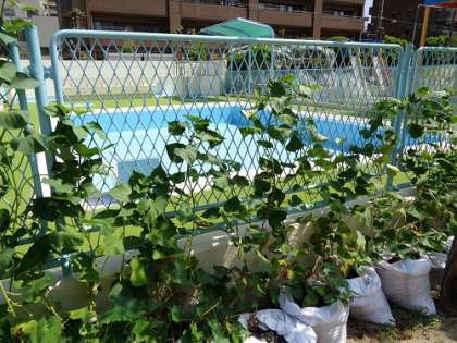 夏休みの間も、幼稚園で育てている野菜や果物は、太陽の光をたくさん浴びてすくすくと育っています。