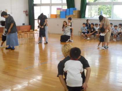 お家の人といろいろなマッサージをするふれあい遊びをしたり、子どもたちみんなで「ラララ体操」をしたりして、楽しい誕生会となりました。