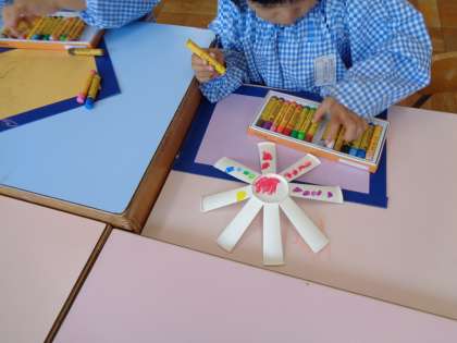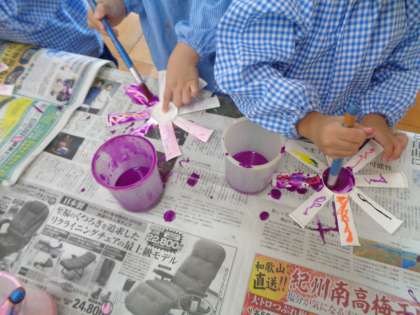 ばら組では、はじき絵でコスモスのお花を作りました。
