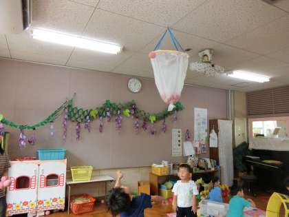 きく組との対戦をきっかけに、保育室でも特訓をしようということになり、好きな遊びの時間にも玉入れに励んでいます。