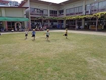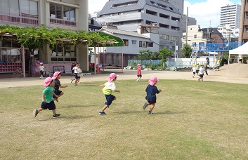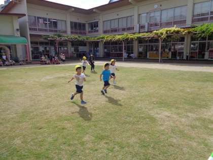 気持ちのよい秋風の下、きく組、さくら組でかけっこをしました。