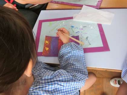 そして、その上から濃い色を重ねること伝えると「あ!塗ったところが隠れてしまう!」との子どもたちの声。