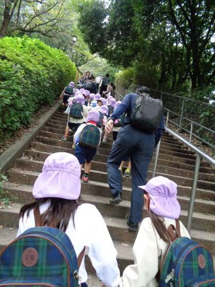 公園内や幼稚園との往復でたくさん歩きましたが、長い階段は数を数えながら上り下りをしたり、みんなでお話をしたりしながら頑張りました♪