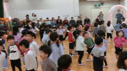 最後はみんなで「ワクワクあふれだす」のダンスをして、楽しい気持ちやお祝いの気持ちがいっぱいにあふれる誕生会になりました。