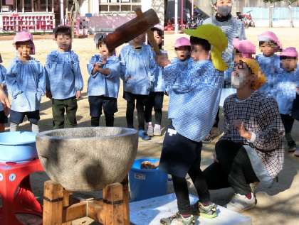 前日、当日とお手伝いいただいた保護者の皆様ありがとうございました。お正月にもちを食べる機会があれば、ぜひ幼稚園でのもちつきのことを思い出してみてくださいね!