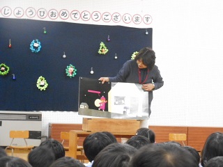 園長先生からのプレゼントは、「まどからのおくりもの」の絵本でした。12月にぴったりのわくわくする絵本でしたね!