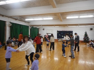 お家の方と「おんせん はいろうか」のふれあい遊びをしたり、みんなで「秘伝ラーメン体操」をしたりして、体もぽかぽかになりました!