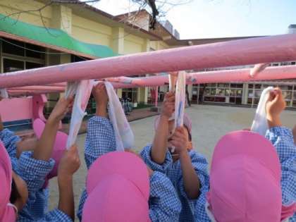 さくら組のお部屋の床や、靴箱、そして園庭の遊具を掃除しました!
