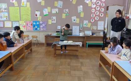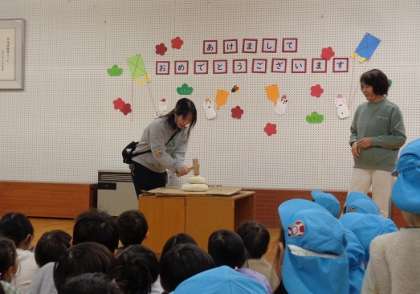 その後は、各クラスでの鏡開きです。どんなことをお願いしようかと考えながら、楽しく鏡開きができました。