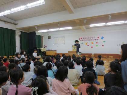 園長先生からの絵本のプレゼントは、「てぶくろ」のお話でした。いろいろな動物たちが出てきましたね。絵本室にも置いているので、また見てみてください!