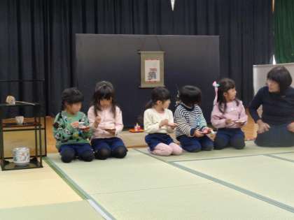 お茶をいただくと「苦い〜」と言っている子どもや「美味しい!」と飲み干す子どももいました。