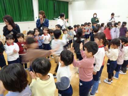 お別れ会第2部では、「誕生月なかま」で遊んだり、幼稚園に関する〇×クイズをしたりして、年長さんとの楽しい時間を過ごしました。