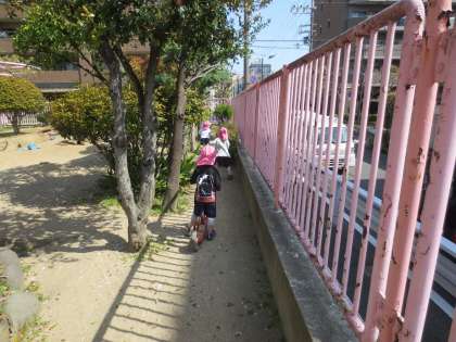 進級してから初めての外遊び!「何をして遊ぶ?」と聞くと「一緒にスケーターで散歩に行こう」と誘ってくれました。