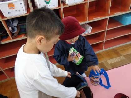 金曜日から年少さんが登園してくるよと子どもたちに知らせていると「ぼくたちが手伝いに行くわ!」と昨日からワクワクしていたゆり組さん。朝から「手伝いに行ってくるわ!」と年少さんの朝の身支度を手伝いに行って優しく教えている姿がありました。