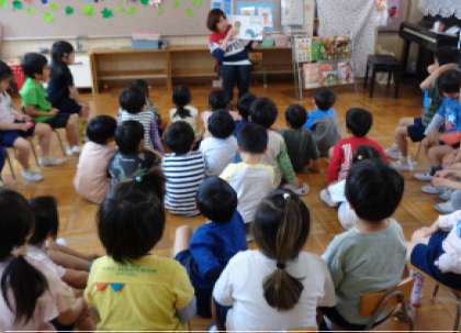 「くじら列車とくらげ列車のどっちの列車に乗りたいですか?」と、子どもたちに問いかけると、「くじら列車!」と大きな声でお返事がありました。