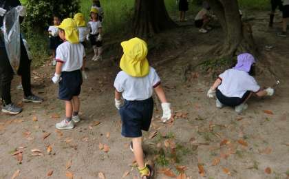 遊ぶ前には、落ちているごみや木の枝などを拾い、掃除をしました。