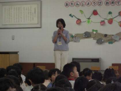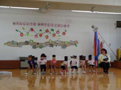 今年度2回目の誕生会は、誕生児さんが自信をもって走ったりスキップしたりして入場し、自己紹介をしていました。