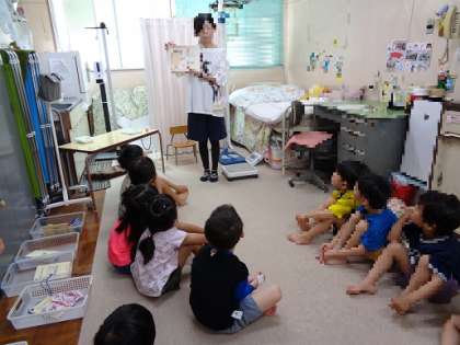 まずは「清潔」って何?というところから、紙芝居を使って話しました。「清潔っていうのは汚れていないこと・きれいにしておくっていうことだよ」「爪が伸びていると、外で遊んだときに土や砂が入りやすくなるよ。土が入っている手はきれいかな?清潔かな?」と問いかけると「きれいじゃなーい!」と声がありました。他にも、「手を洗ったあと、濡れたままにしておくのは清潔?」と聞くと、「きれいじゃない!ハンカチでふいたらいい!」と返ってきました。また、「鼻水がでたとき、指でこすっているのは清潔?」と尋ねると、「ティッシュで鼻をかむ!」と答えてくれました。