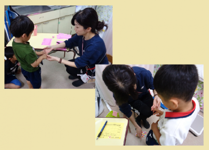 今年度から、ハンカチ・ティッシュ・爪のすべての欄に○が付いたら、「せいけつしらべ」のカードにスタンプを押しています。1回目で○が付かなくても、翌日以降に爪を切ったり、ハンカチ・ティッシュを持ってきたりしたらスタンプを押すことにしました。