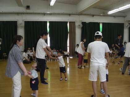 誕生日のお友達はおうちの人と「せんたく」のふれあい遊びをして、手をつないだり抱き上げてもらったりして、とても嬉しそうでした。