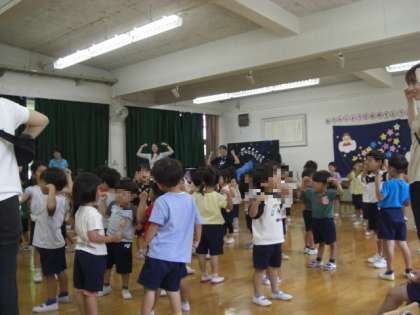 最後はみんなで「もりもりマッチョ」の体操です! みんなで「マッチョマッチョ」と言いながら体を動かして体操しました。楽しい誕生会になりましたね。