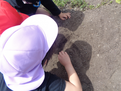 園庭では、子どもたちが毎日ダンゴムシやアリなどの生き物たちを見つけて観察しています。