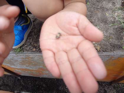 ダンゴムシを観察していると、「あかちゃんダンゴムシがたくさんいるよ!」とおなかにたくさんあかちゃんをつけたお母さんダンゴムシを見つけて大喜び♪