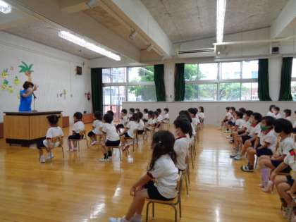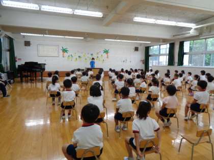 長い長い夏休み。園長先生と、『早寝・早起き・朝ごはん』『お手伝いをしよう!』『知らない人にはついて行かないようにしよう』『大きなけがや、病気をしないように』と約束をしました。