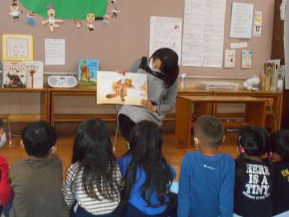 PTAクラブ活動のひとつでもある『わくわくえほんのくに』の方々が、子どもたちに月に一度、絵本の読み聞かせをしてくださいます。今日は各クラスと未就学児活動のつつじクラブにも来てくださり、子どもたちのために絵本を選び読んでくださいました。