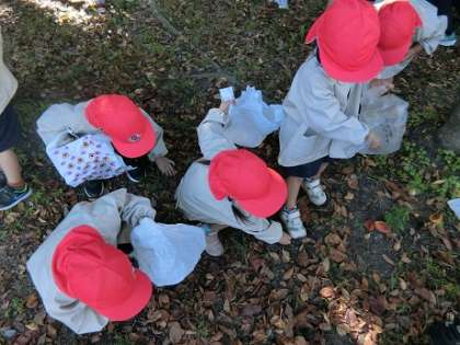 葉っぱの下に落ちているどんぐりを見つけ「どんぐりさん、かくれんぼが上手だね」と嬉しそうに話していました。