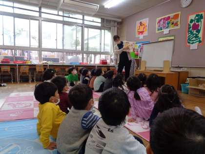 火曜日は、中央区保健福祉センターの保健師さんが幼稚園に来て、絵本「おなかのこびと」の内容から、元気に過ごすためのお話をしてくださいました。