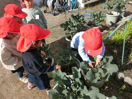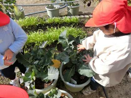 子どもたちが指さす先を見ると、小さなブロッコリーが見えました。
